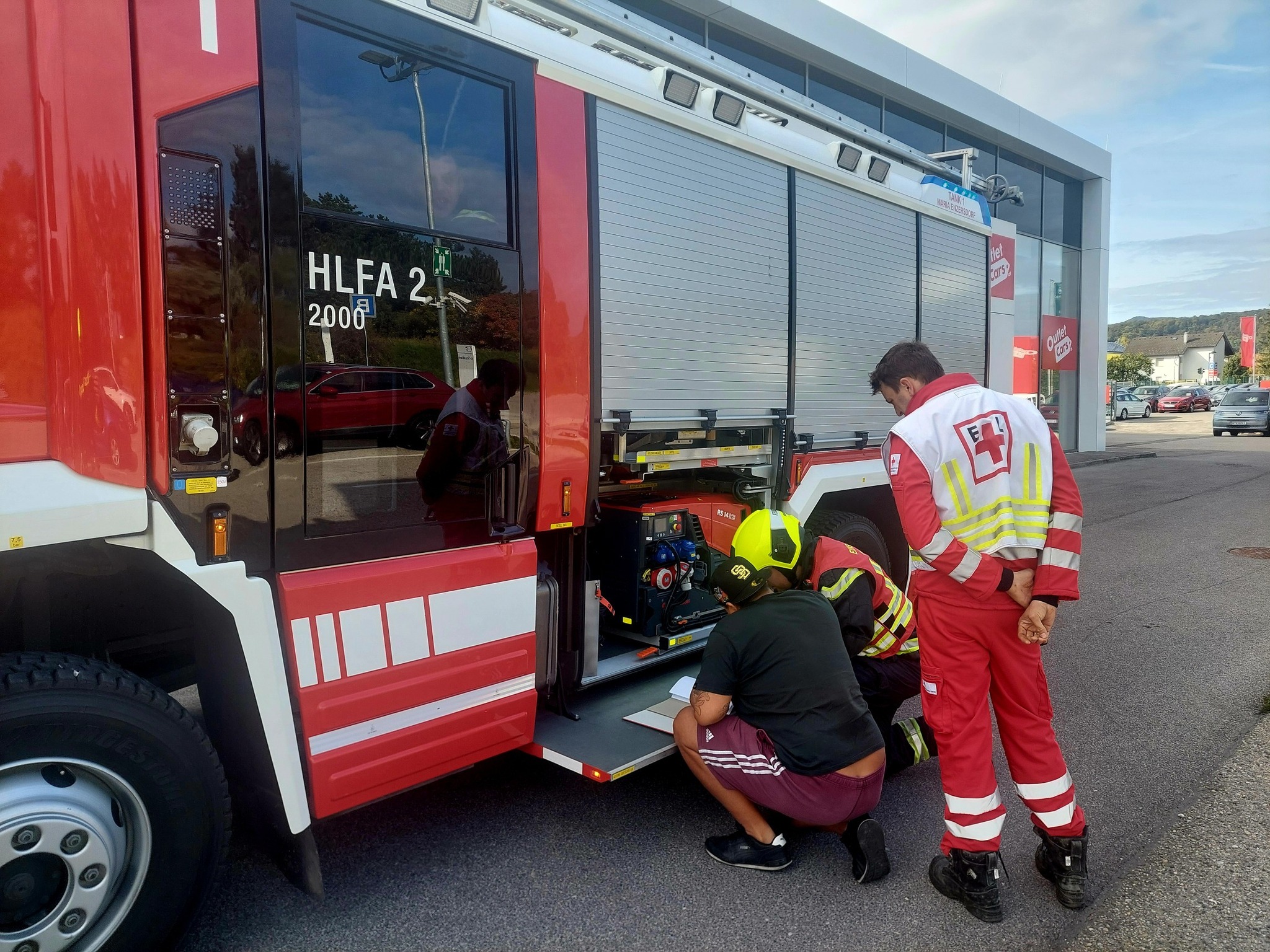 Ein aufmerksamer Mitarbeiter bemerkte beim Betreten des Objektes, dass ein eigenartiger Geruch in der Luft lag. Sofort leitete er Lüftungsmaßnahmen ein. Da nach einer Stunde dauerhaften Lüften, der Geruch nach wie vor bestand, wurde das Gebäude geräumt und die Einsatzkräfte alarmiert. Am 11. Oktober 2025 wurde deshalb die Freiwillige Feuerwehr Maria Enzersdorf zum Schadstoffeinsatz alarmiert. Beim Eintreffen am Einsatzort, konnte der Geruch sofort wahrgenommen werden. Ein Atemschutztrupp begab sich mit einem Mehrgasmessgerät zur Suche ins Objekt. Zusätzlich wurde die Rettung, die Polizei und das Gaswerk alarmiert. Nach intensiver Suche, wurde dank des Brandschutzbeauftragten, das Ausgasen einer Autobatterie, als Ursache, festgestellt. Nachdem keine Konzentration mehr gemessen wurden, konnten sämtliche Einsatzkräfte wieder einrücken.