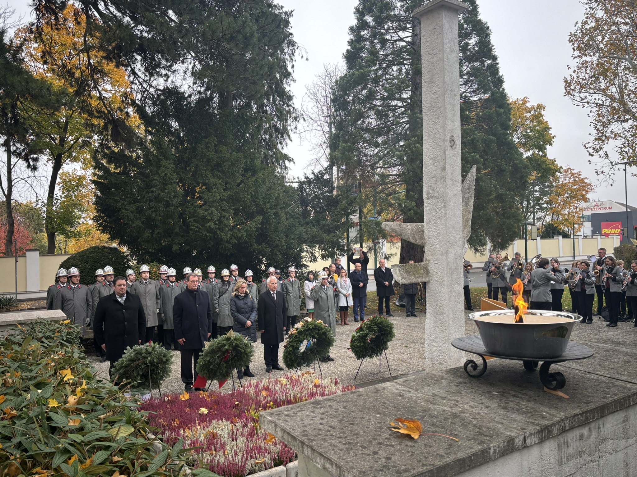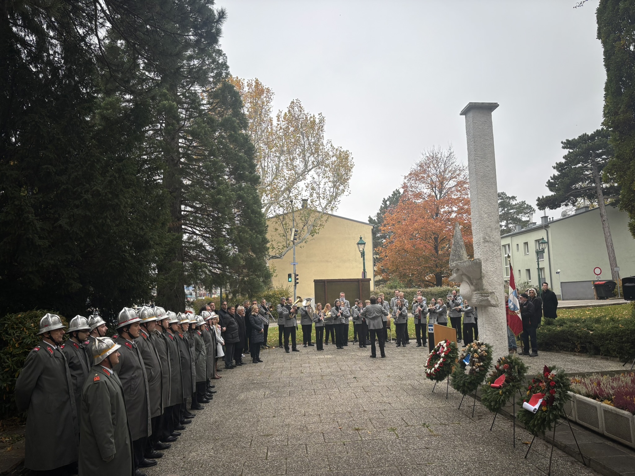 Am 01.11.2025 fand wieder die alljährliche, feierliche Kranzniederlegung am Kriegerdenkmal, im Bergschenhoekpark, statt. Dieses Mahnmal wurde 1962 an der südöstlichen Ecke des Parks, an der Kreuzung Hauptstraße/Johannesstraße, mit den Namen der Gefallenen und Vermissten beider Weltkriege errichtet.