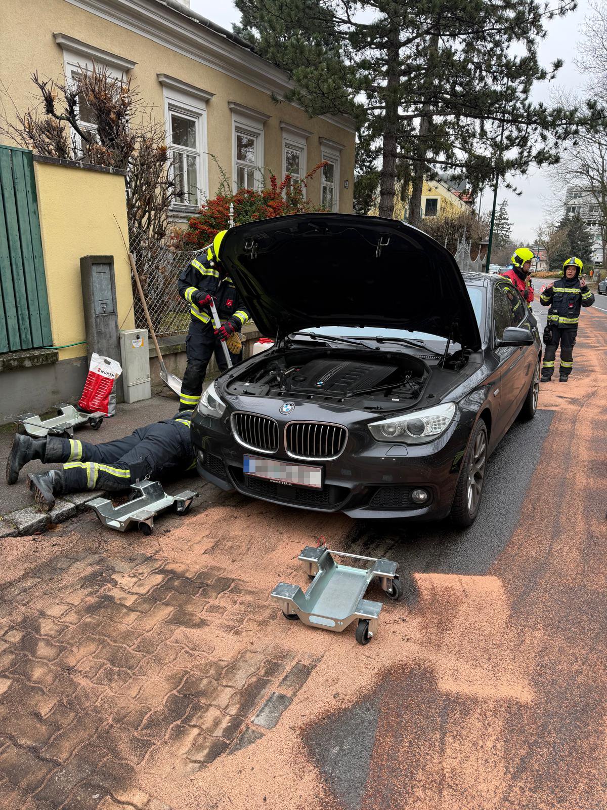 Am 19. Dezember 2025 wurde die Freiwillige Feuerwehr Maria Enzersdorf um 13:09 Uhr zu einer rund 100 Meter langen Ölspur alarmiert. Diese drohte, durch den Abwasserkanal in das Abwassersystem zu gelangen. Vermutlich war ein technisches Gebrechen an einem Pkw die Ursache. Beim Eintreffen der Einsatzkräfte stellte sich heraus, dass es sich bei der ausgelaufenen Flüssigkeit um größere Mengen Motoröl handelte. Nachdem großflächig Ölbindemittel auf die Straße aufgetragen worden war, wurde der Straßenerhalter informiert, der ein Sonderfahrzeug zur Beseitigung entsandte. Anschließend wurde das Abschleppfahrzeug der Freiwillige Feuerwehr Gießhübl alarmiert, um das Fahrzeug von der Unfallstelle zu entfernen. Nach rund zwei Stunden konnten die ehrenamtlichen Mitglieder der Freiwilligen Feuerwehr Maria Enzersdorf wieder ins Feuerwehrhaus einrücken. Die Freiwillige Feuerwehr Maria Enzersdorf bedankt sich bei allen eingesetzten Kräften für die Unterstützung!