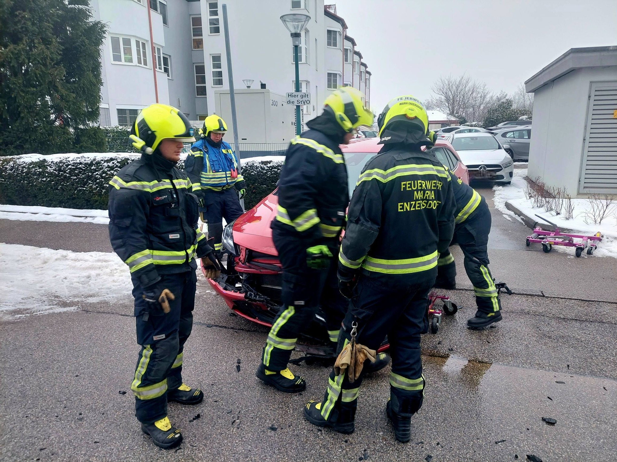 Aus bislang unbekannten Umständen kam es am 15. Jänner 2026 zu einem Verkehrsunfall mit drei beteiligten Fahrzeugen. Um 14:43 Uhr wurde die Freiwillige Feuerwehr Maria Enzersdorf zum technischen Einsatz alarmiert. Am Einsatzort eingetroffen, stellte der Einsatzleiter fest, dass es sich um das Einsatzgebiet der Freiwilligen Feuerwehr Mödling handelt. Nach Rücksprache mit der Bereichsalarmzentrale wurden schließlich beide Autos händisch in freie Parklücken geschoben und danach deren Besitzern übergeben. Anschließend konnten die ehrenamtlichen Feuerwehrkräfte wieder ins Feuerwehrhaus einrücken.
