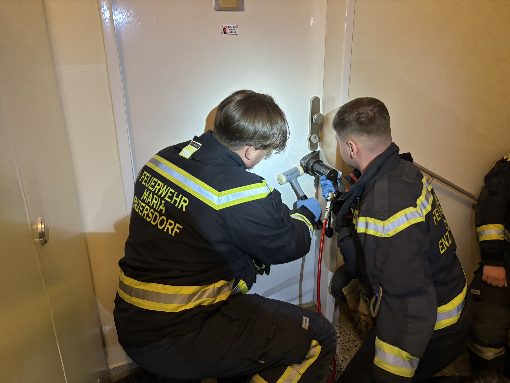 Die Freiwillige Feuerwehr Maria Enzersdorf wurde am 25. Jänner 2026 um 19:56 Uhr zu einer Türöffnung alarmiert. Vor Ort wurde ein Unfall in der Wohnung vermutet. Die Feuerwehrkräfte konnten die Wohnungstür mit dem hydraulischen Türöffnungsset binnen kürzester Zeit öffnen. Anschließend wurde die Einsatzstelle den Rettungskräften übergeben und die ehrenamtlichen Mitglieder der Freiwilligen Feuerwehr konnten ins Feuerwehrhaus einrücken.
