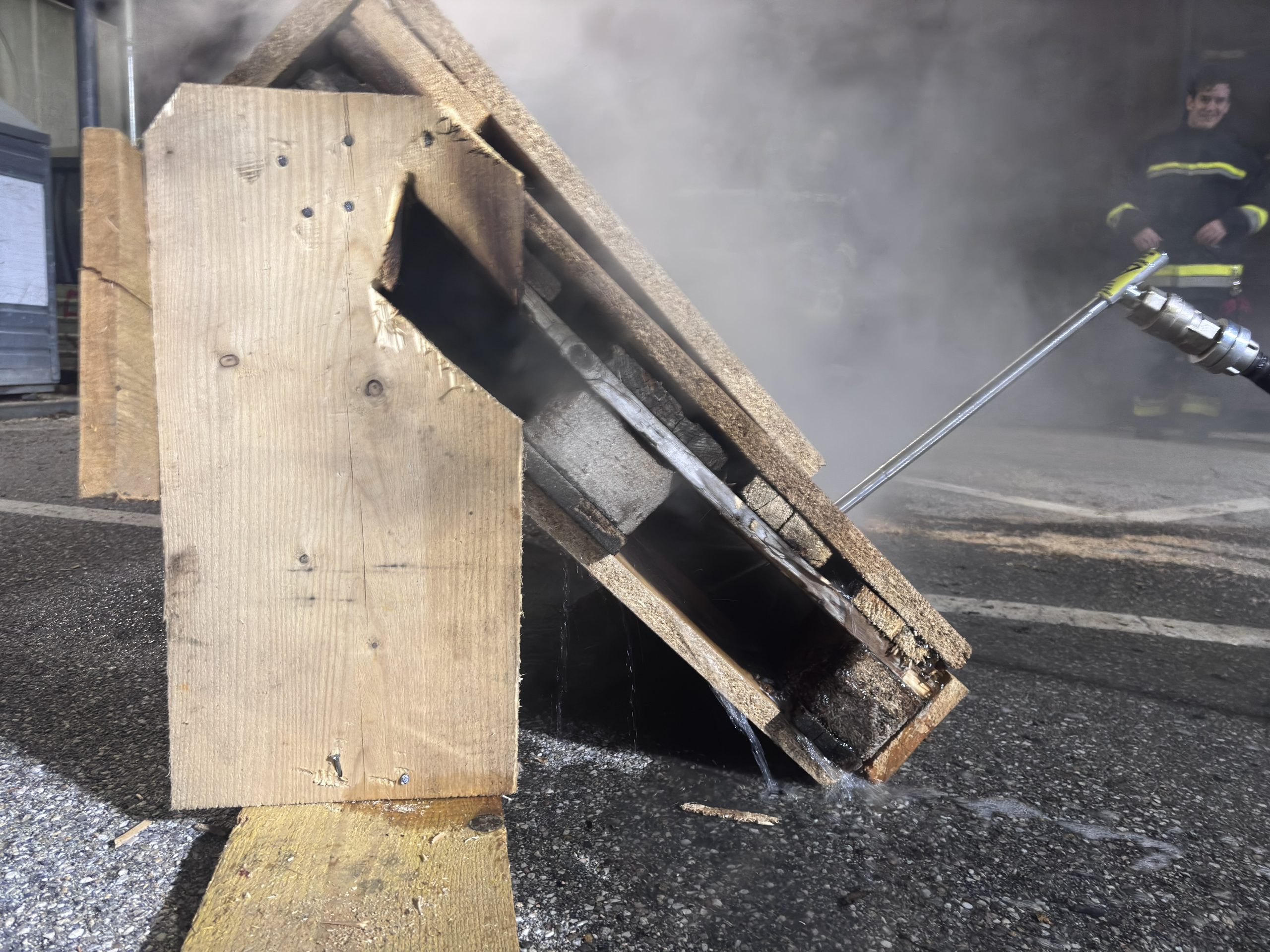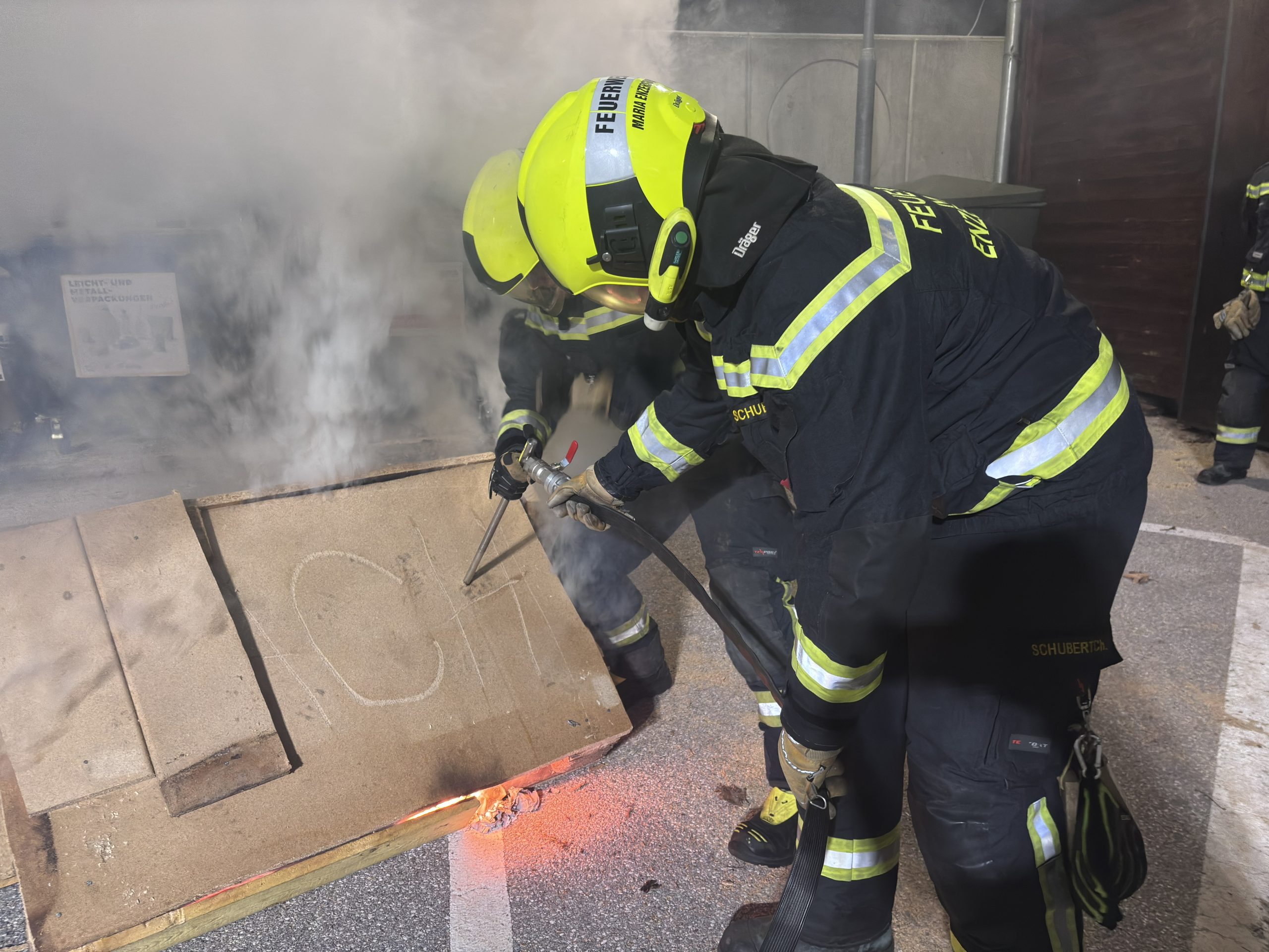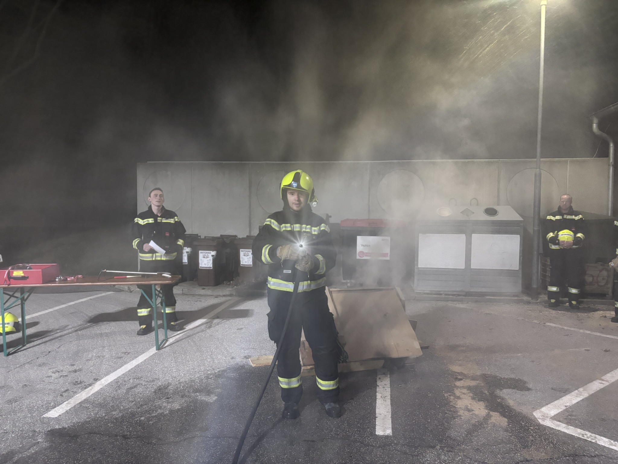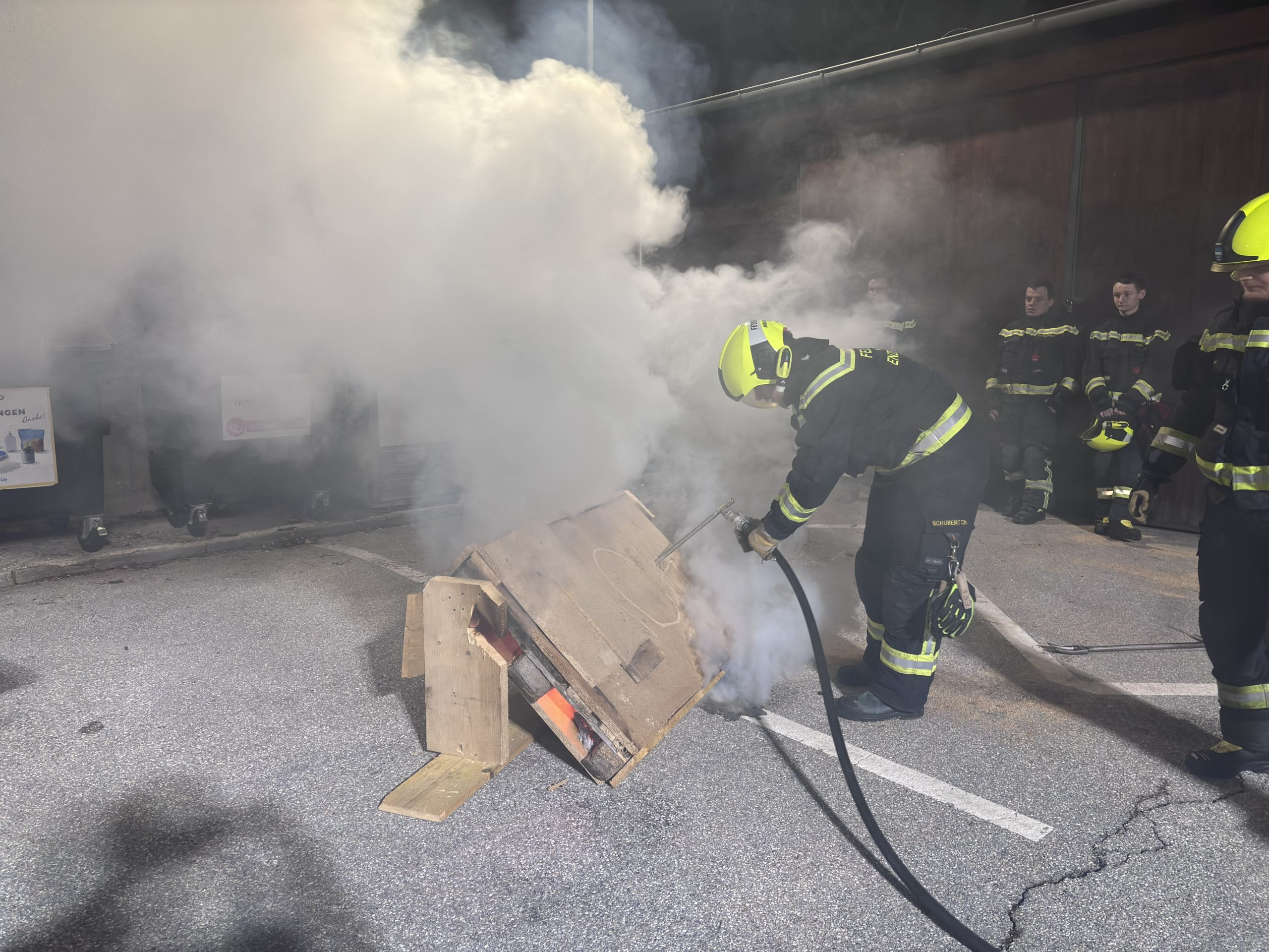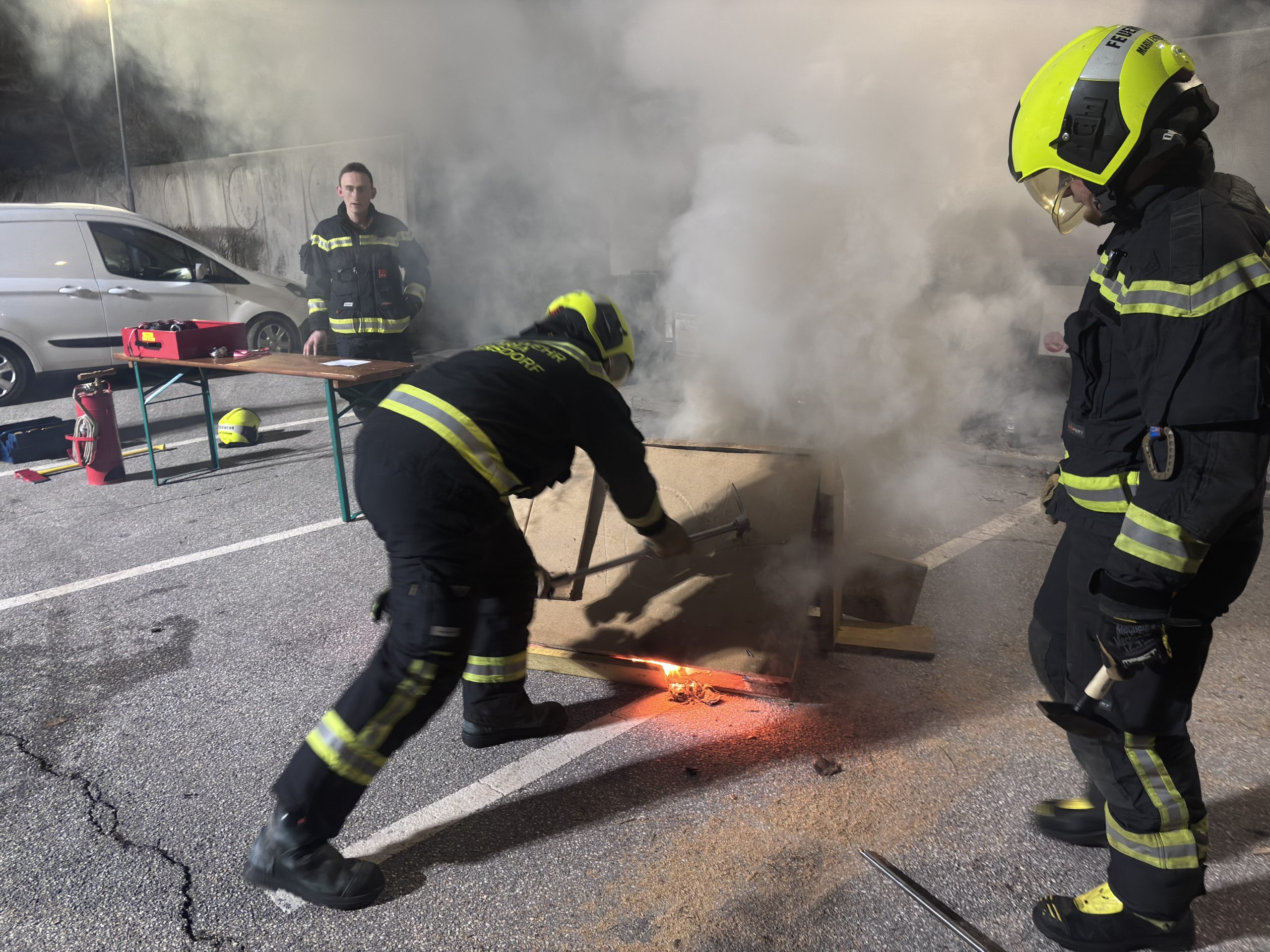 Im Anschluss an den theoretischen Teil folgte die praktische Anwendung. Dabei wurden unterschiedliche Szenarien simuliert, um das taktisch richtige Vorgehen bei verdeckten Bränden zu trainieren. Die Teilnehmer konnten die Handhabung der Löschlanze selbstständig durchführen und das zuvor vermittelte Wissen festigen.