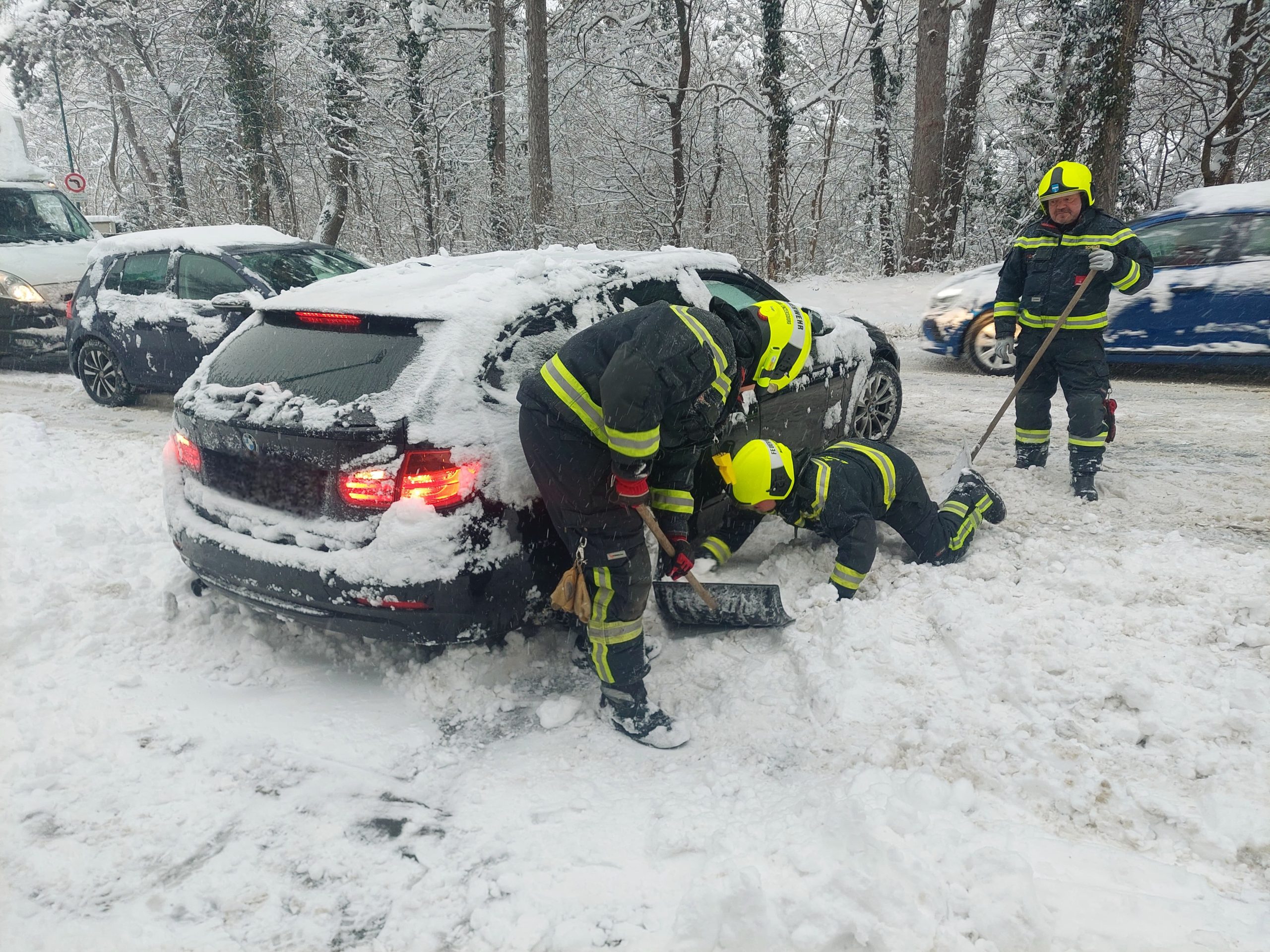 Bereits in den frühen Morgenstunden, um 07:10 Uhr, rückten die ehrenamtlichen Mitglieder zu einem im Schnee steckengebliebenen Lkw aus. Der Sattelschlepper konnte mittels Schleppstange aus seiner misslichen Lage befreit werden. Noch während dieser Arbeiten erfolgten weitere Alarmierungen. In weiterer Folge mussten zwei weitere Klein-Lkws sowie zwei Pkw, teils händisch, teils durch Abschleppmaßnahmen, aus dem Schnee befreit werden.