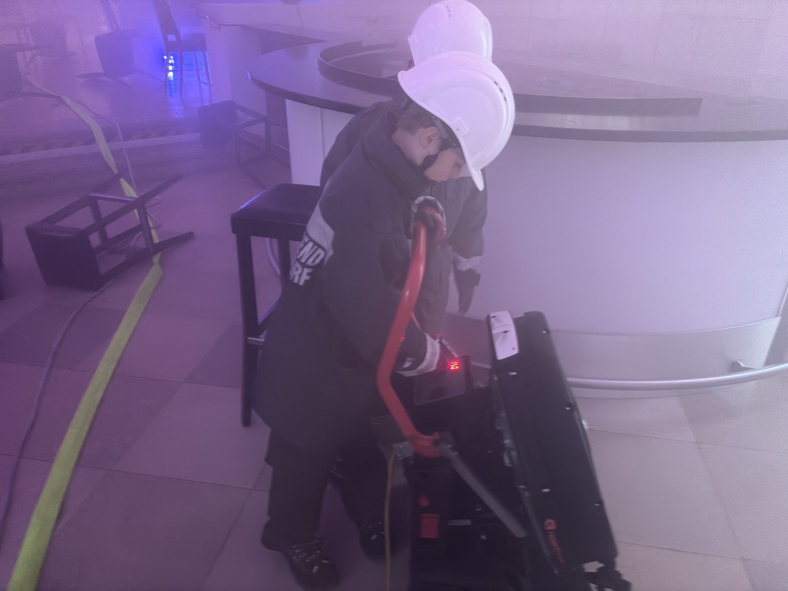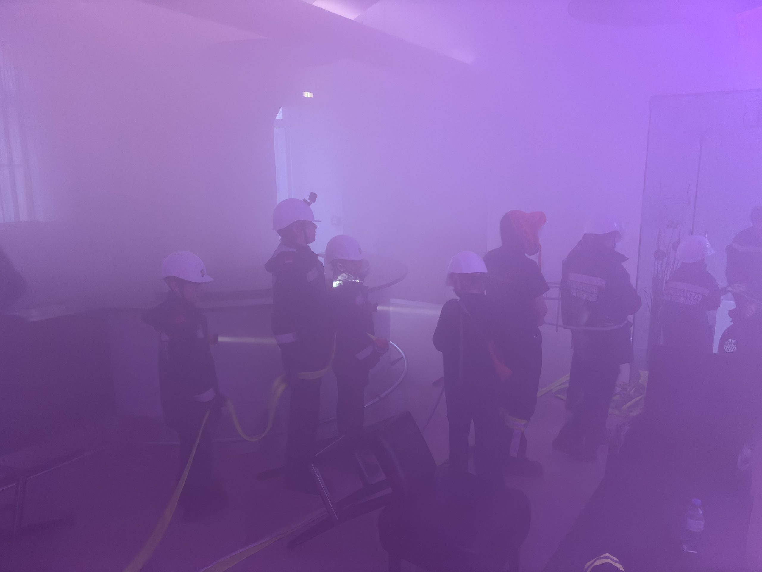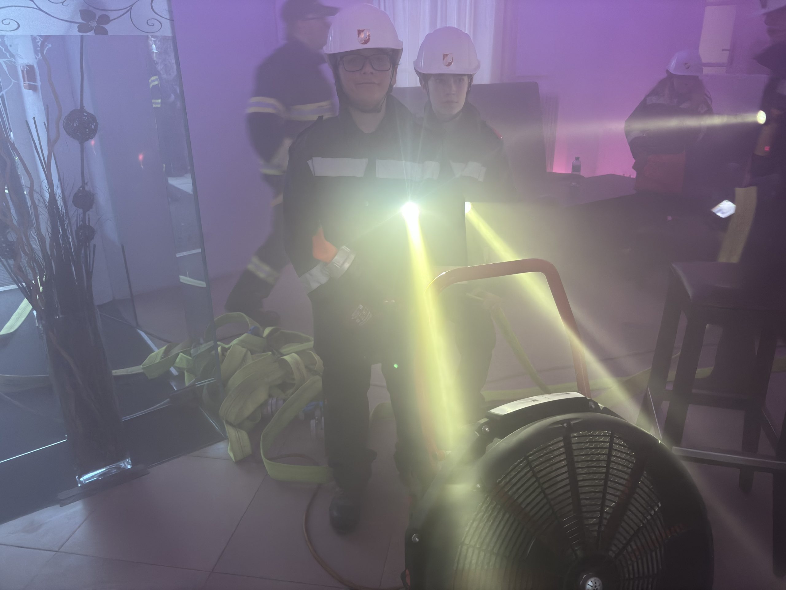 Um eine möglichst realistische Einsatzsituation darzustellen, wurden die Räumlichkeiten mittels Nebelmaschine stark verraucht. Ziel der Übung war es, die Jugendlichen mit den grundlegenden Abläufen eines Brandeinsatzes vertraut zu machen.
