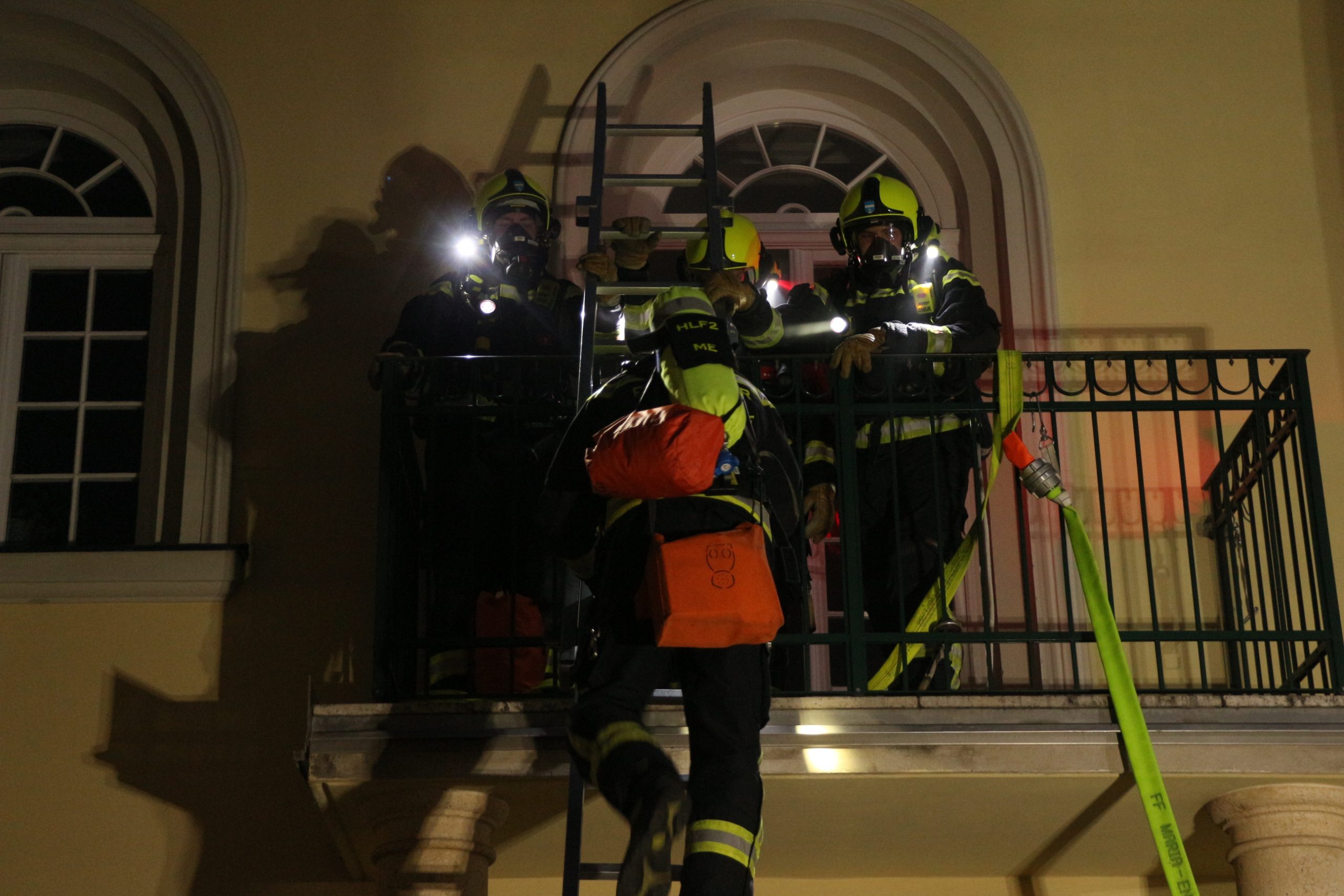 Um die Einsatzlage zu erschweren, wurde ein Fahrzeug so vor dem Gebäude positioniert, dass der Einsatz eines Hubrettungsgerätes nicht möglich war. Die Rettung der Personen am Balkon sowie an Fenstern erfolgte daher über zwei Steckleiterteile.