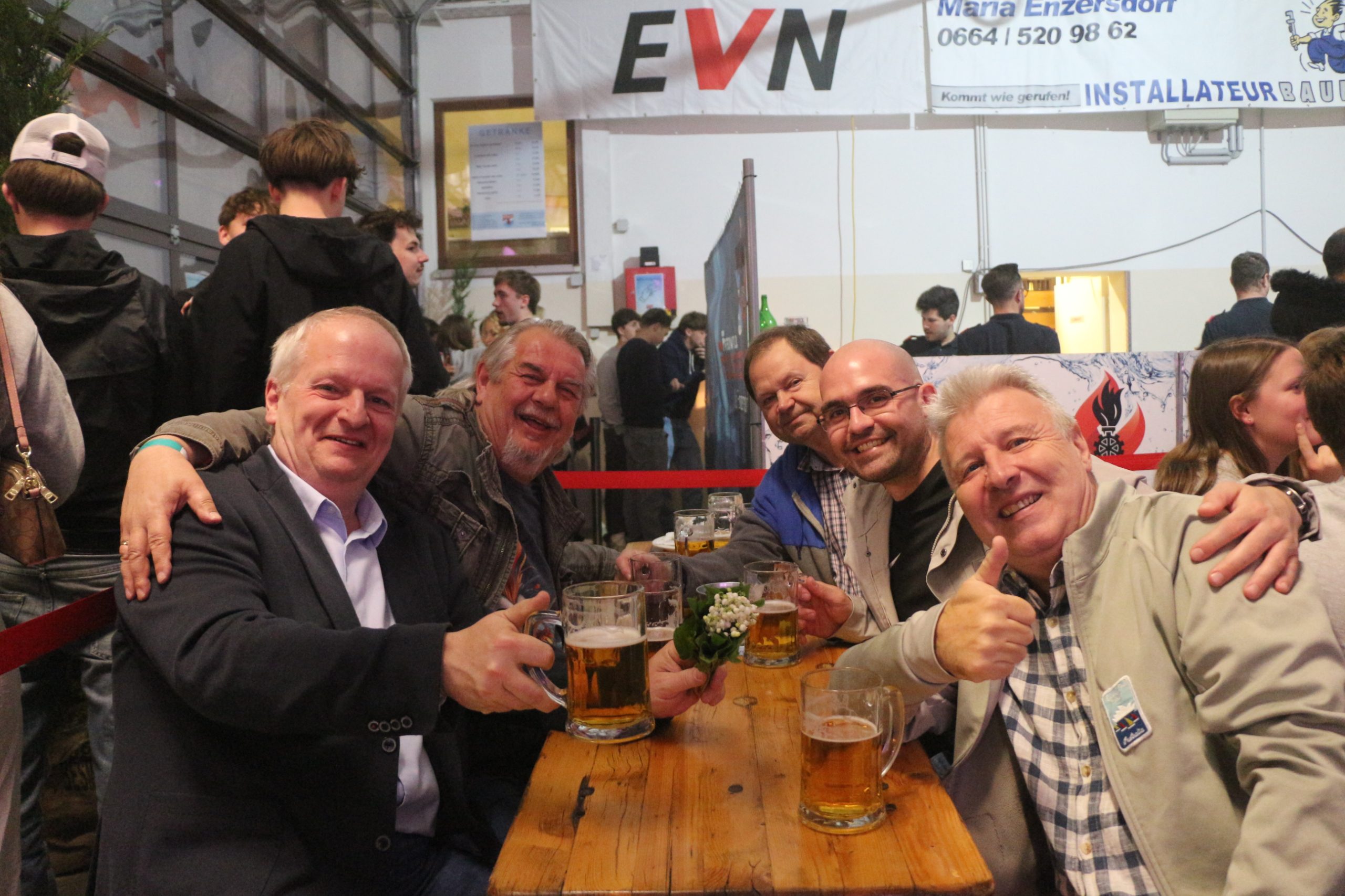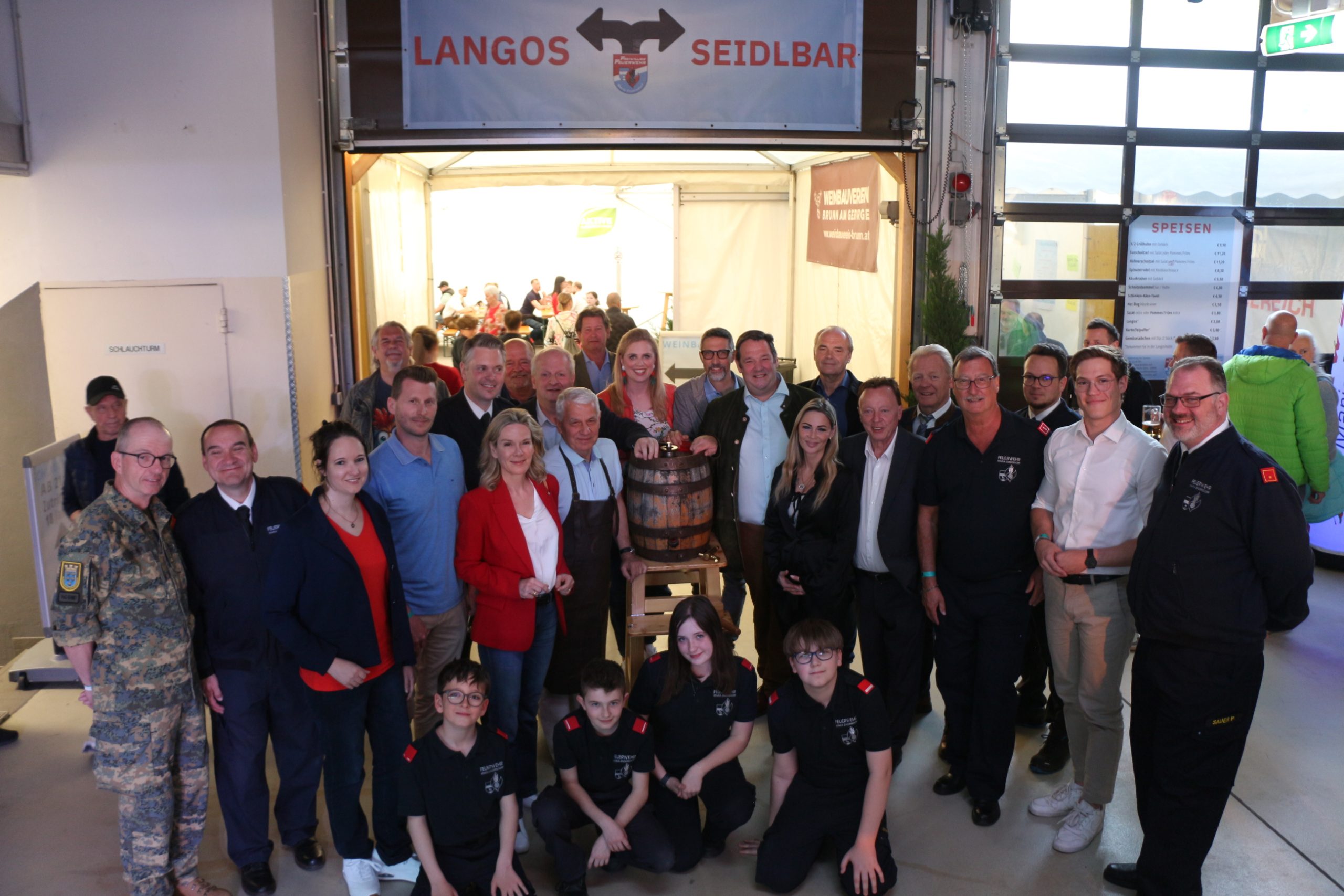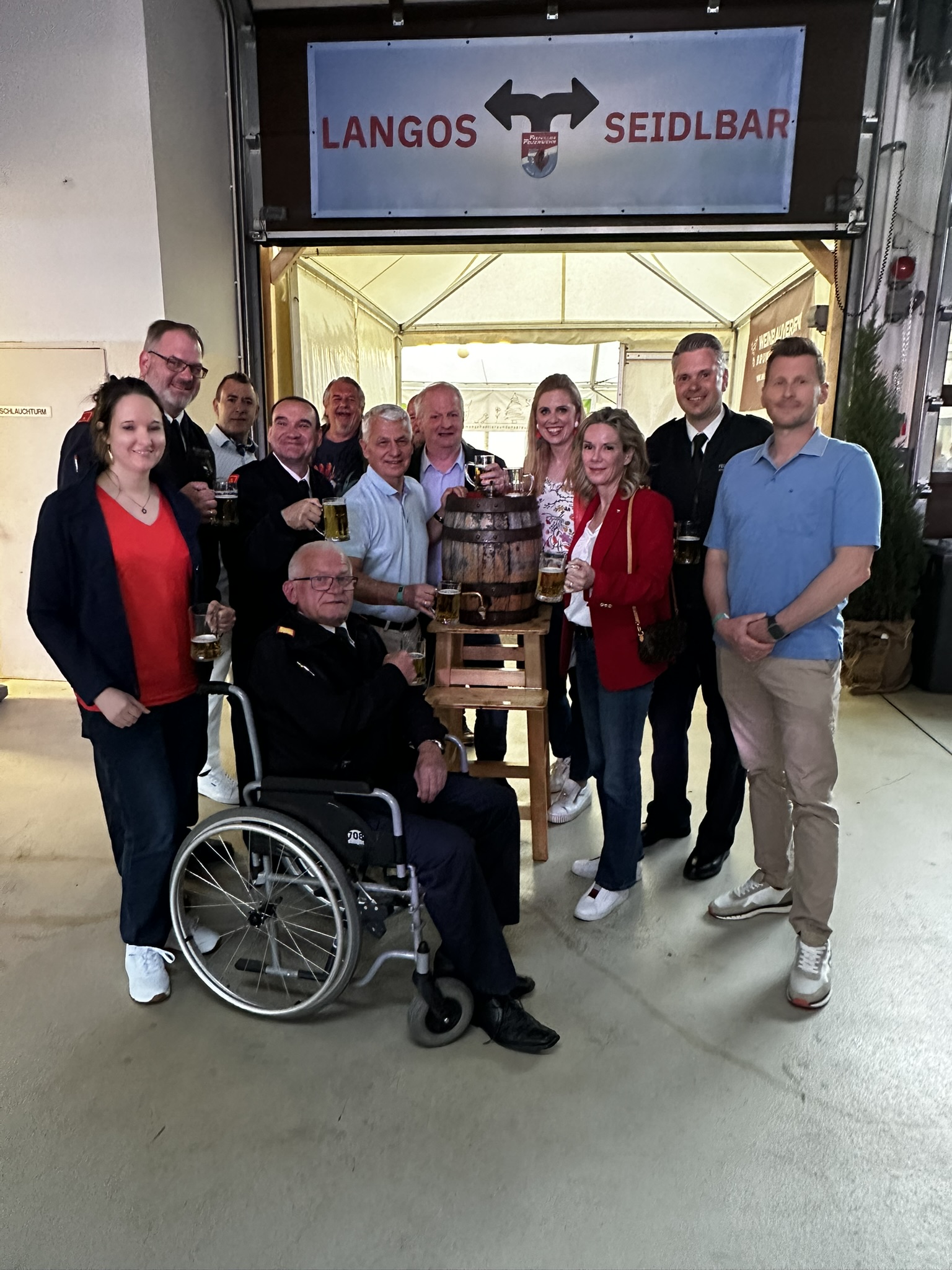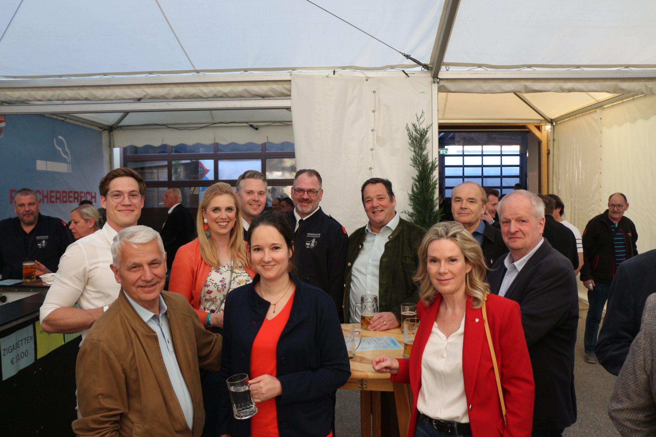 Beim Bieranstich versammelten sich neben mehreren Mandataren der Marktgemeinde Maria Enzersdorf Feuerwehrkommandant OBI Josef Osterkorn, Bgm. DI Johann Zeiner, Vbgm. Michaela Haidvogel, GfGR Reg.Rat. Markus Waldner.