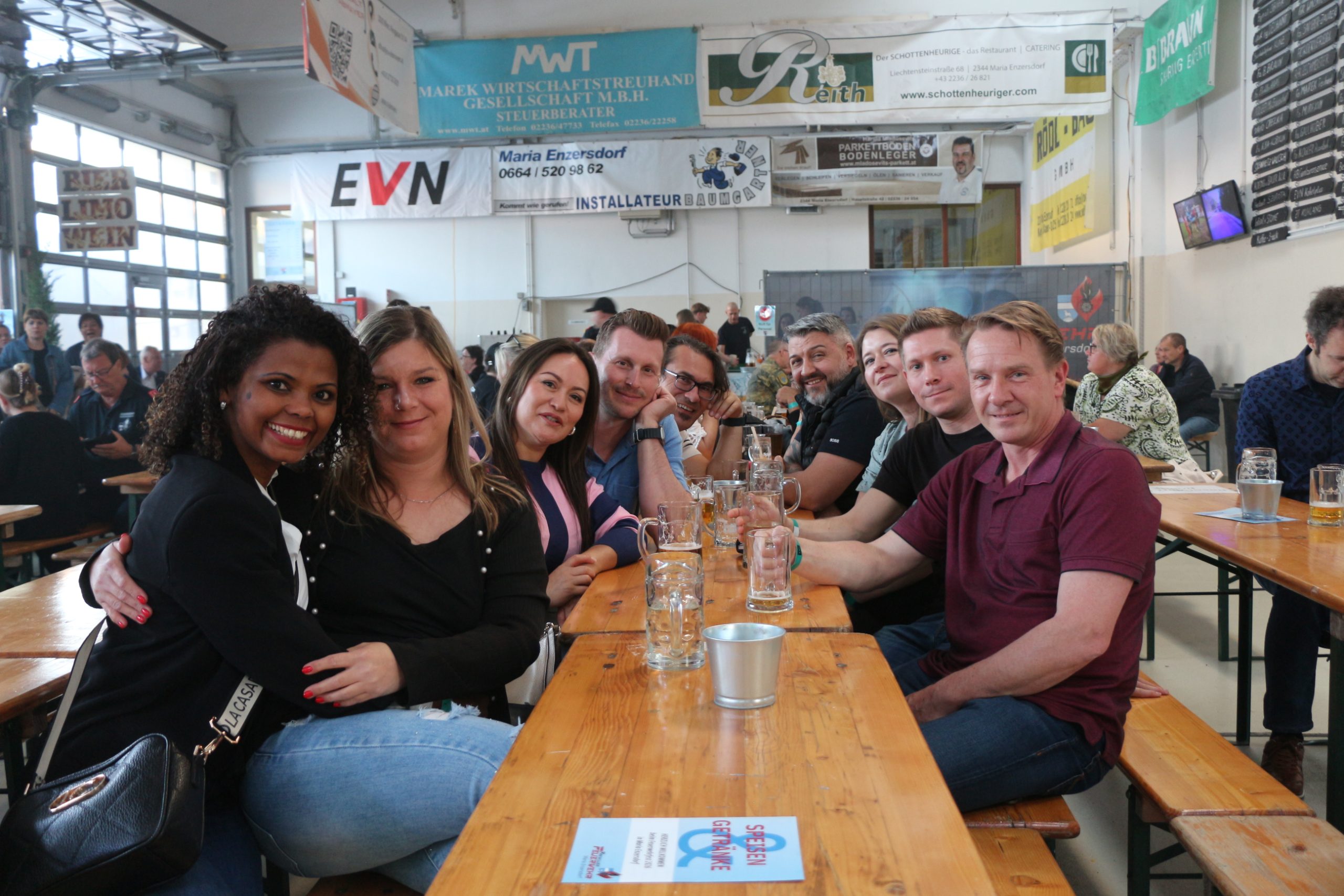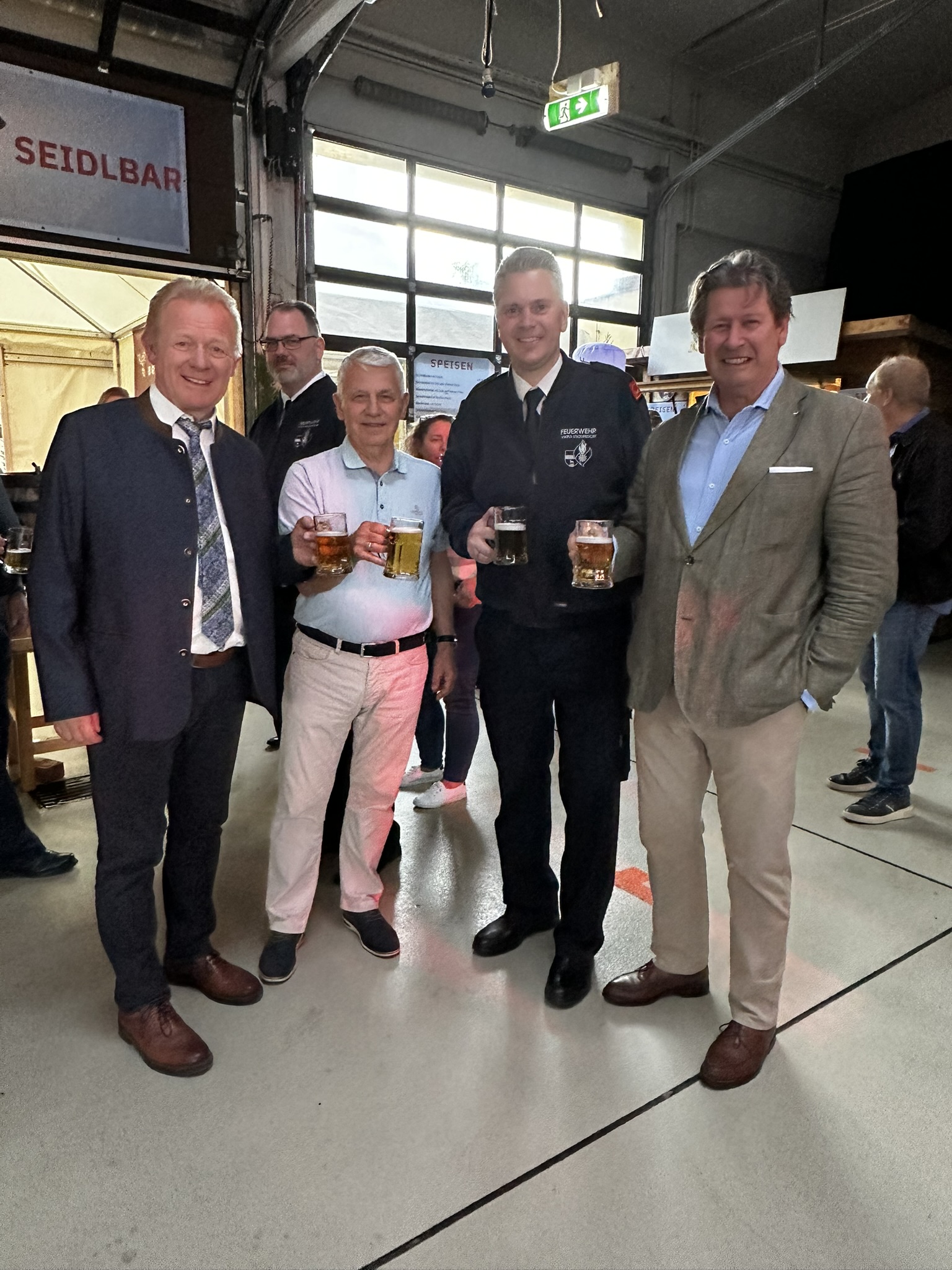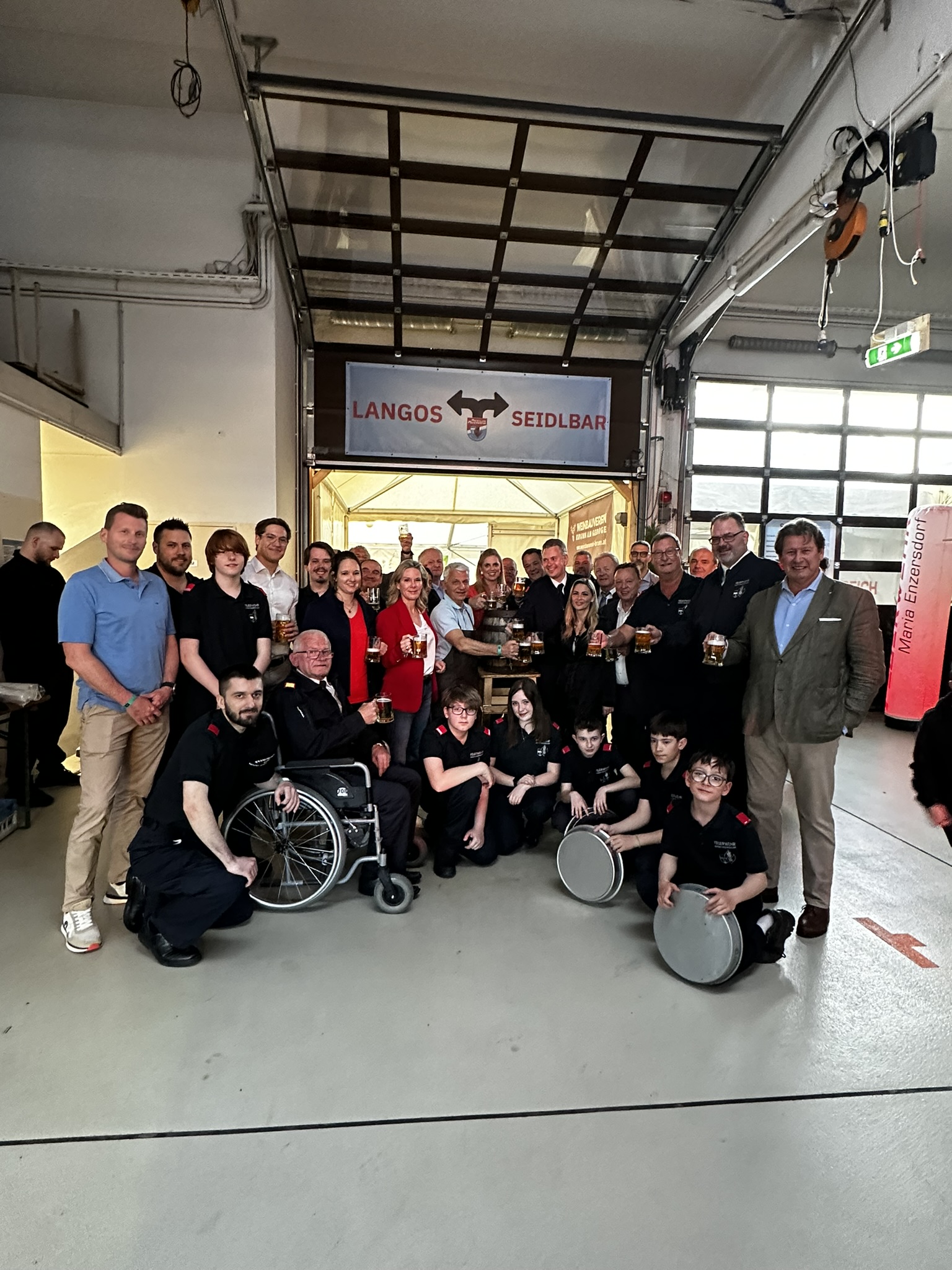 Beim Bieranstich versammelten sich neben mehreren Mandataren der Marktgemeinde Maria Enzersdorf Feuerwehrkommandant OBI Josef Osterkorn, Bgm. DI Johann Zeiner, Vbgm. Michaela Haidvogel, GfGR Reg.Rat. Markus Waldner.