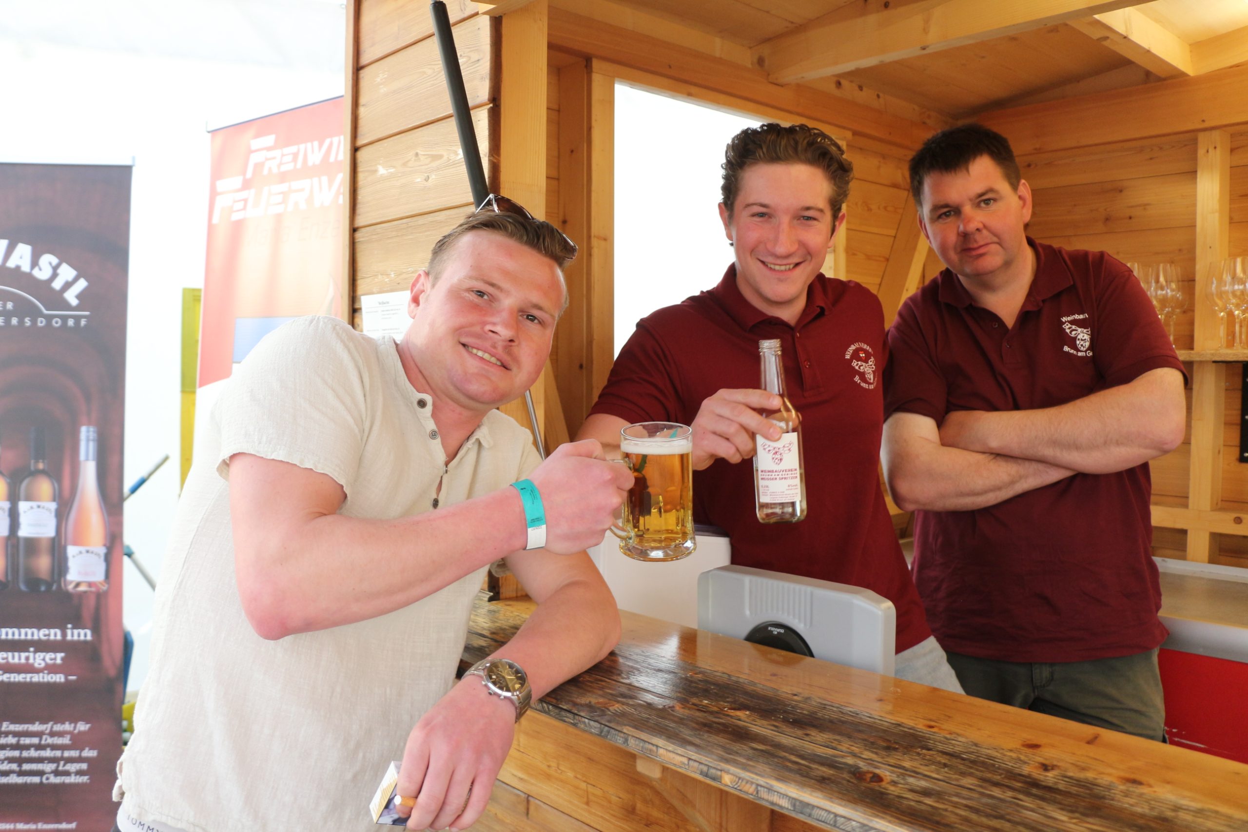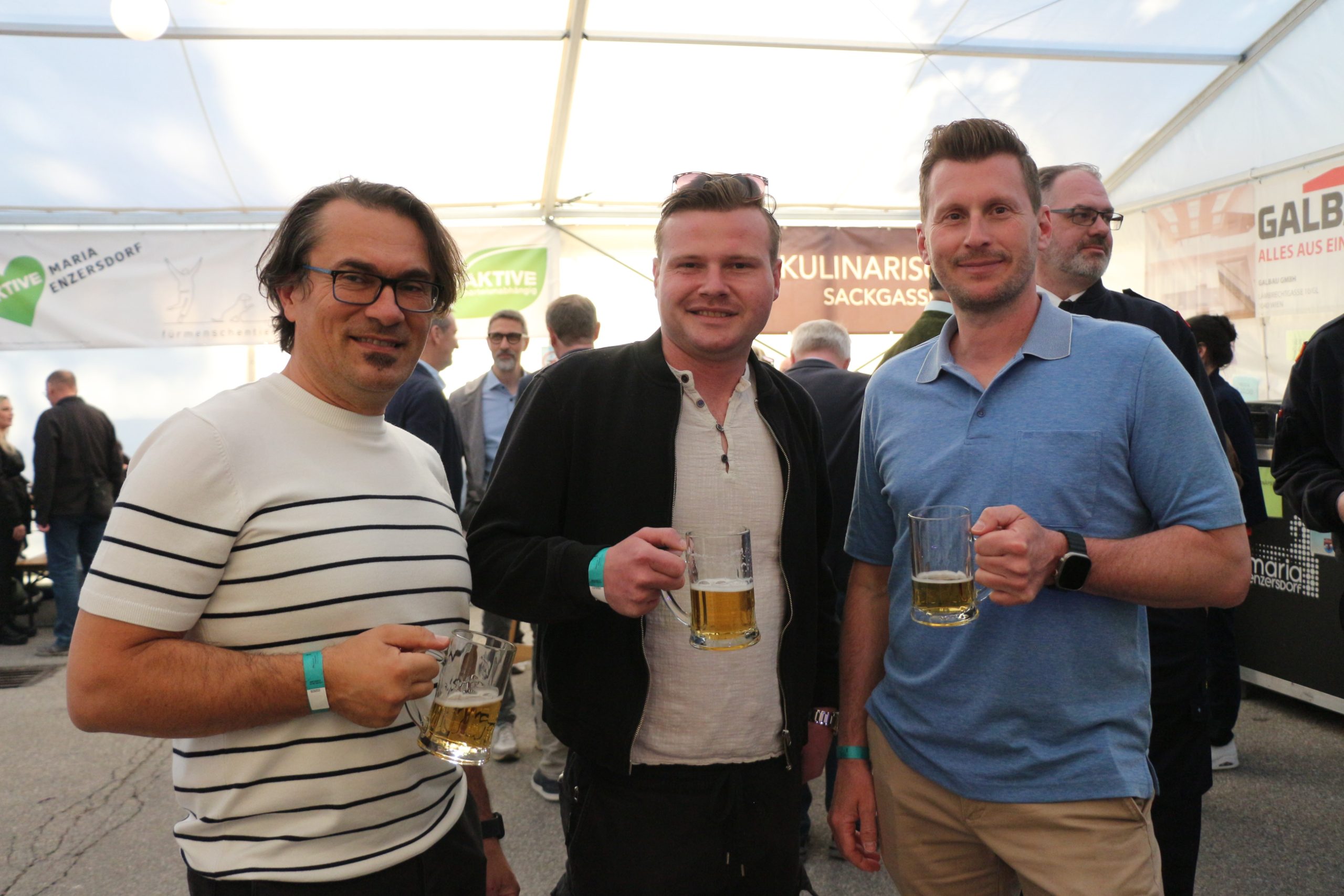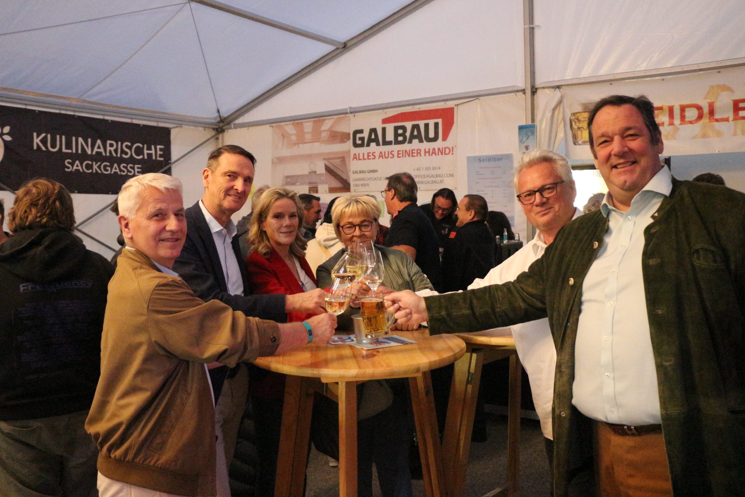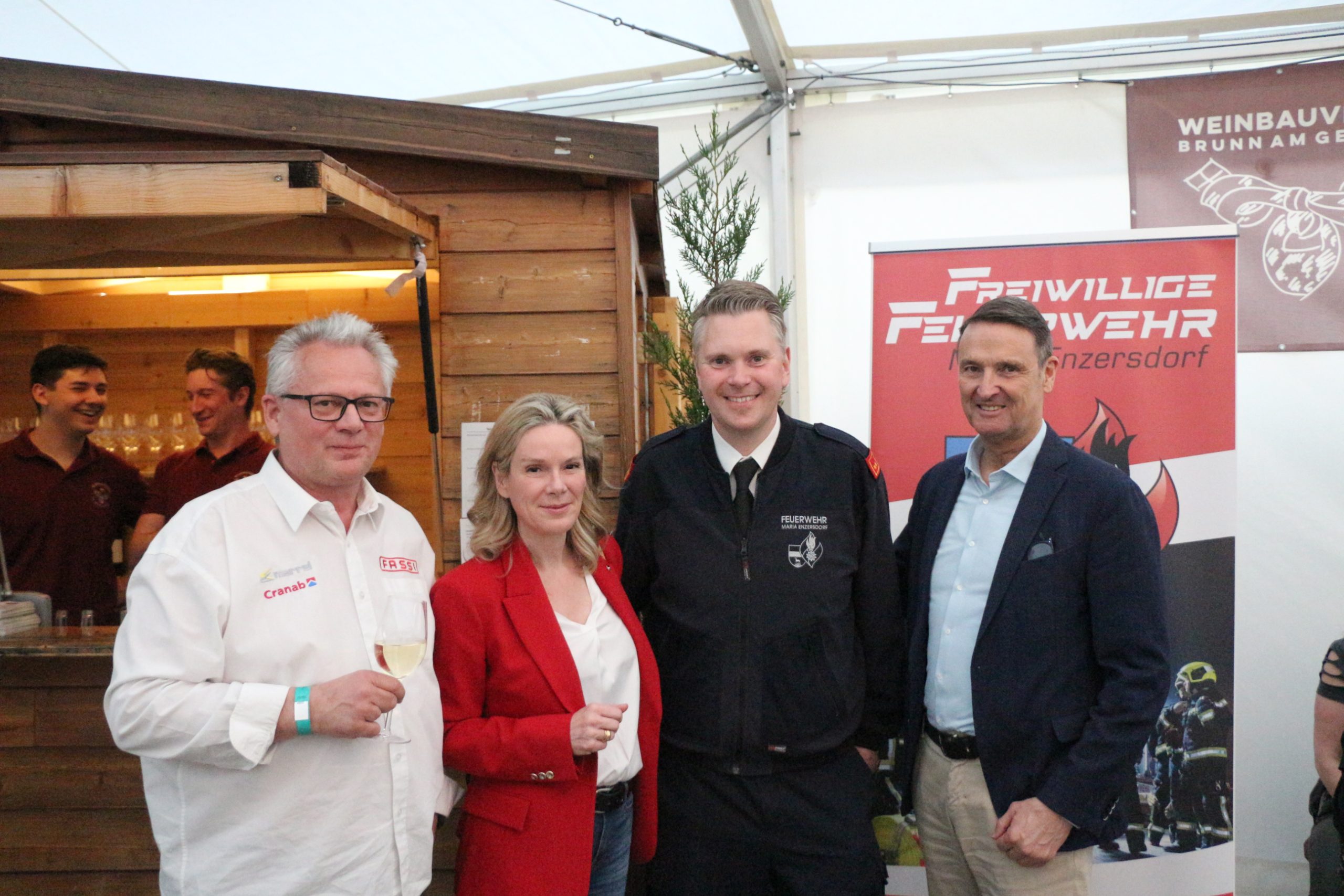 Beim Bieranstich versammelten sich neben mehreren Mandataren der Marktgemeinde Maria Enzersdorf Feuerwehrkommandant OBI Josef Osterkorn, Bgm. DI Johann Zeiner, Vbgm. Michaela Haidvogel, GfGR Reg.Rat. Markus Waldner.