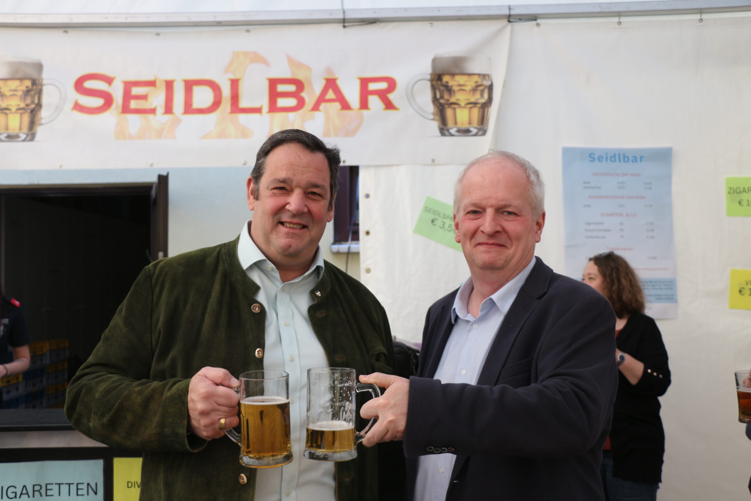Um 18:30 Uhr wurde das Fest mit dem Bieranstich durch Bürgermeister DI Johann Zeiner und Kommandant OBI Josef Osterkorn offiziell eröffnet. Landtagsabgeordnete Mag. Marlene Zeidler-Beck bedankten sich bei der gesamten Feuerwehrmannschaft für das ständige, ehrenamtliche Engagement. Auch konnten zahlreiche Mandatare der Marktgemeinde Maria Enzersdorf begrüßt werden. Seitens der Feuerwehr hießen wir den Obmann des Fördervereines Walter Baumgartner und eine Vielzahl an Abordnungen von Feuerwehren des Bezirkes Mödling herzlich willkommen.